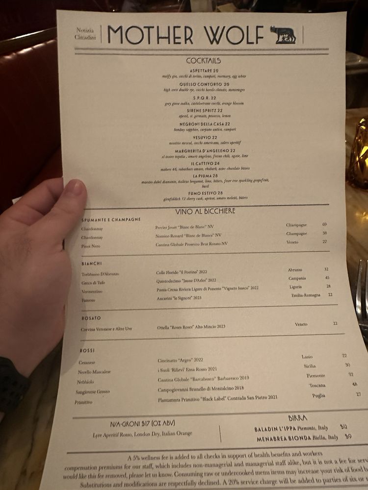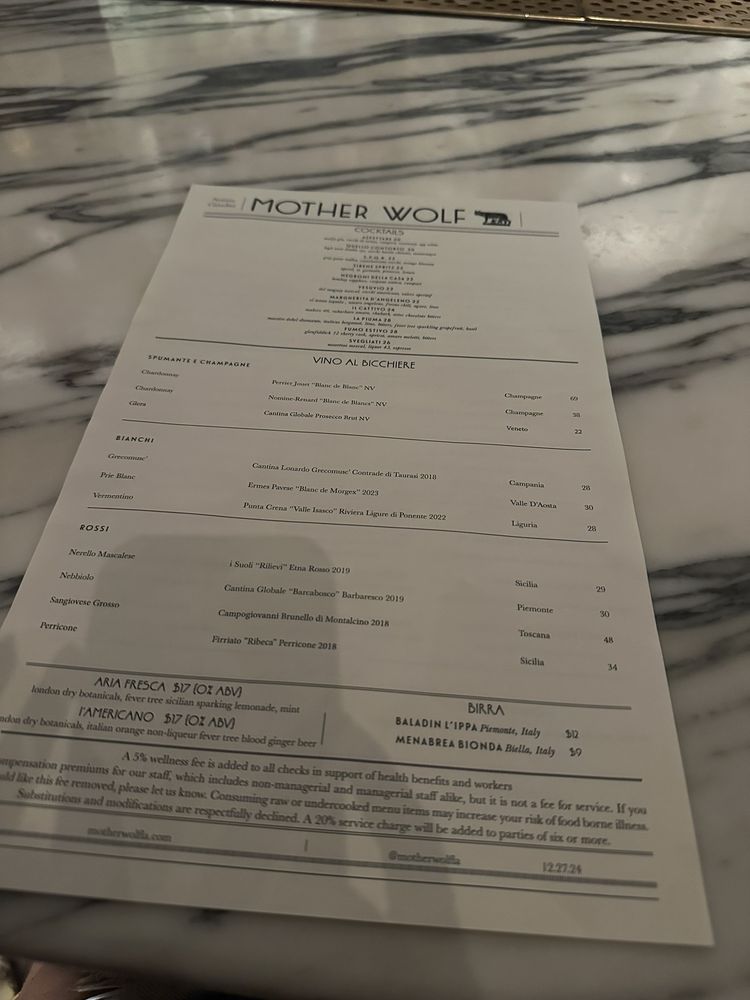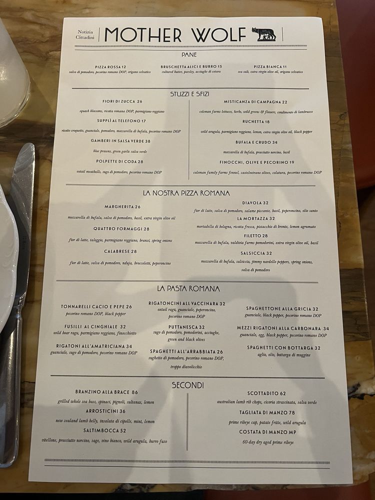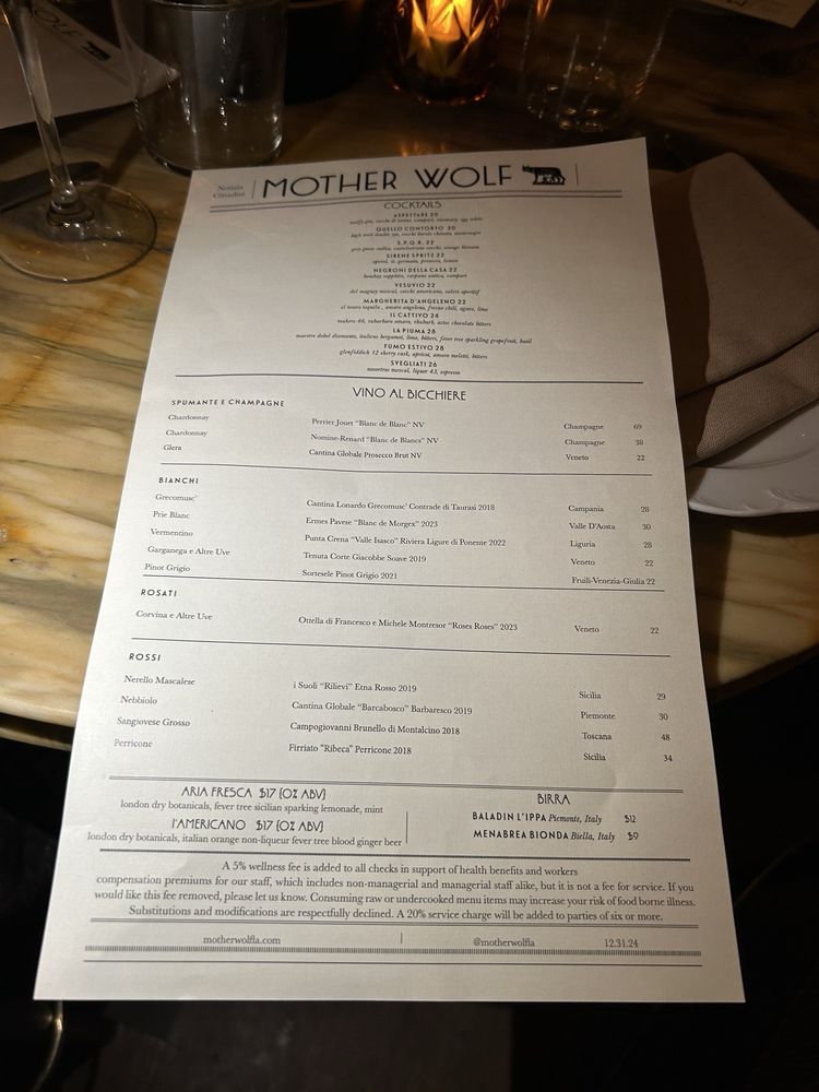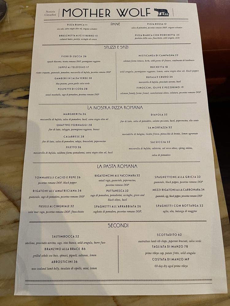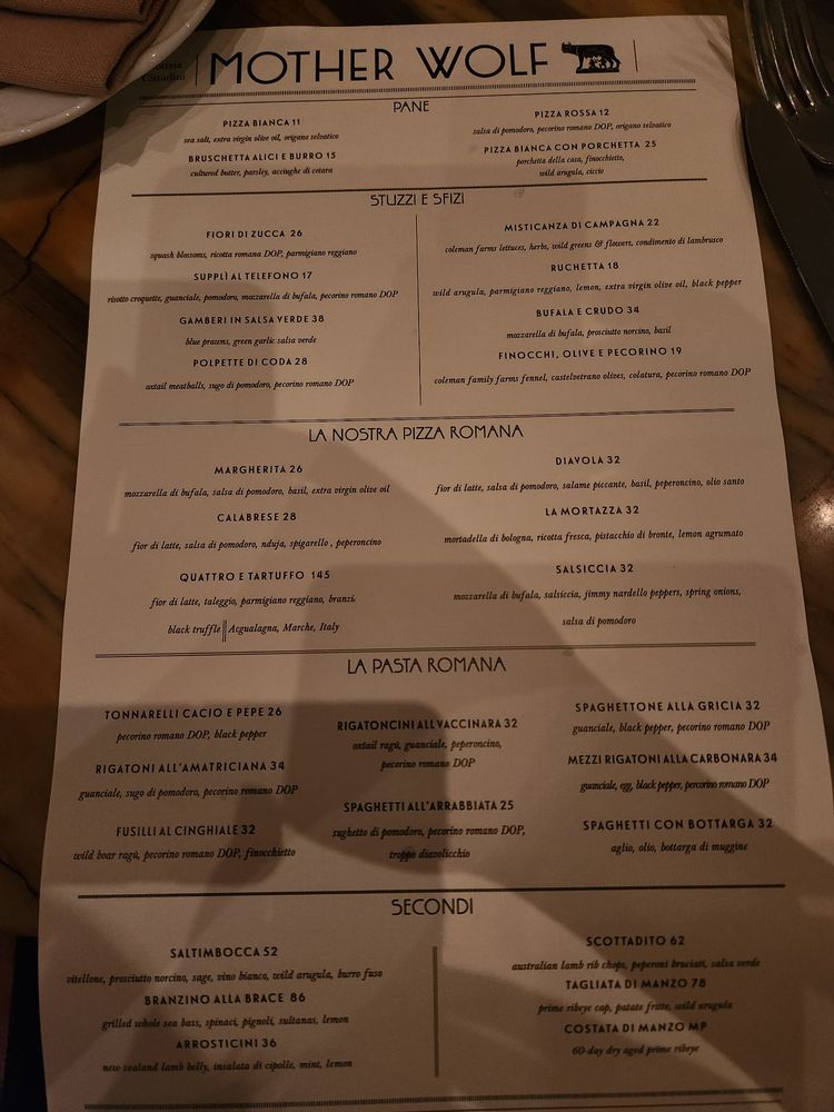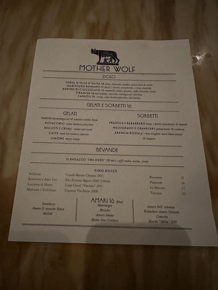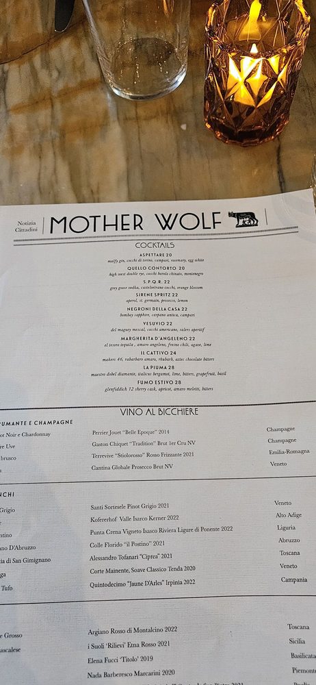 Introducing the menu at Mother Wolf, an upscale Italian restaurant in Los Angeles, offers a trendy and romantic ambiance. The standout dishes include Fiori Di Zucca and Polpette di Coda, which are packed with flavor and surprises. The pasta selection is stellar, cooked al dente and bursting with taste. The cacio e pepe is a must-try, and proceeds from its order go to the LAFD foundation until January. The service is exceptional, with staff speaking Italian, adding to the authenticity of the experience. The squash blossoms and prawns are highlights, while the fennel salad provides a refreshing balance. Valet parking is available for convenience. Mother Wolf promises a special dining experience with delicious food and impeccable service, making it a prime spot for a memorable meal.